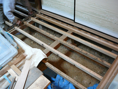 基礎屋さんが床下に潜るためにあちこち床を切ってしまったので