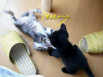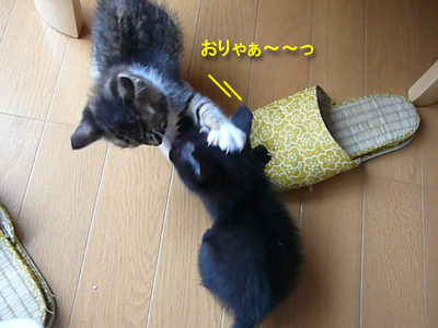私のスリッパは既に攻撃対象、もうボロボロ(^^;