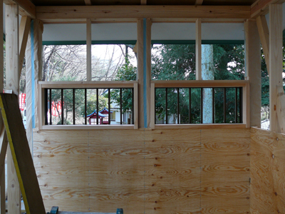 今日は壁のラスボード張りも開始
