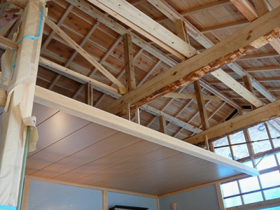 午前中のお茶の時間に行くと天井が半分張られていました