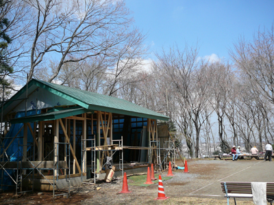 板金屋さんがトイレの屋根をかけて行ったそうだ