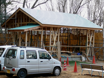 こちらは床の下地調整をほぼ終え、トイレ部の建て方に入る模様