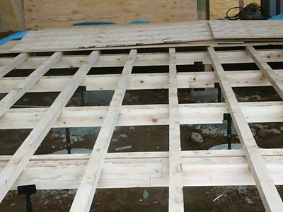 まだ釘を使う作業が多く昨日打ちつけた指を再びつぶす(--;