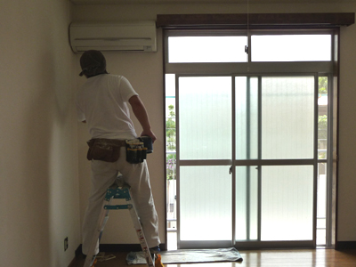 驚いたのは、エアコンは取り外しもせず養生もしない事